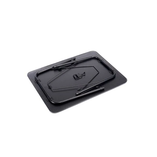 Extra sterke, plat op te vouwen tafel met verstelbare poten voor oneffen oevers. Voorzien van een sluiting die de poten bijeen houdt bij het opbergen en het opzetten om plat te transporteren en voor de stabiliteit.